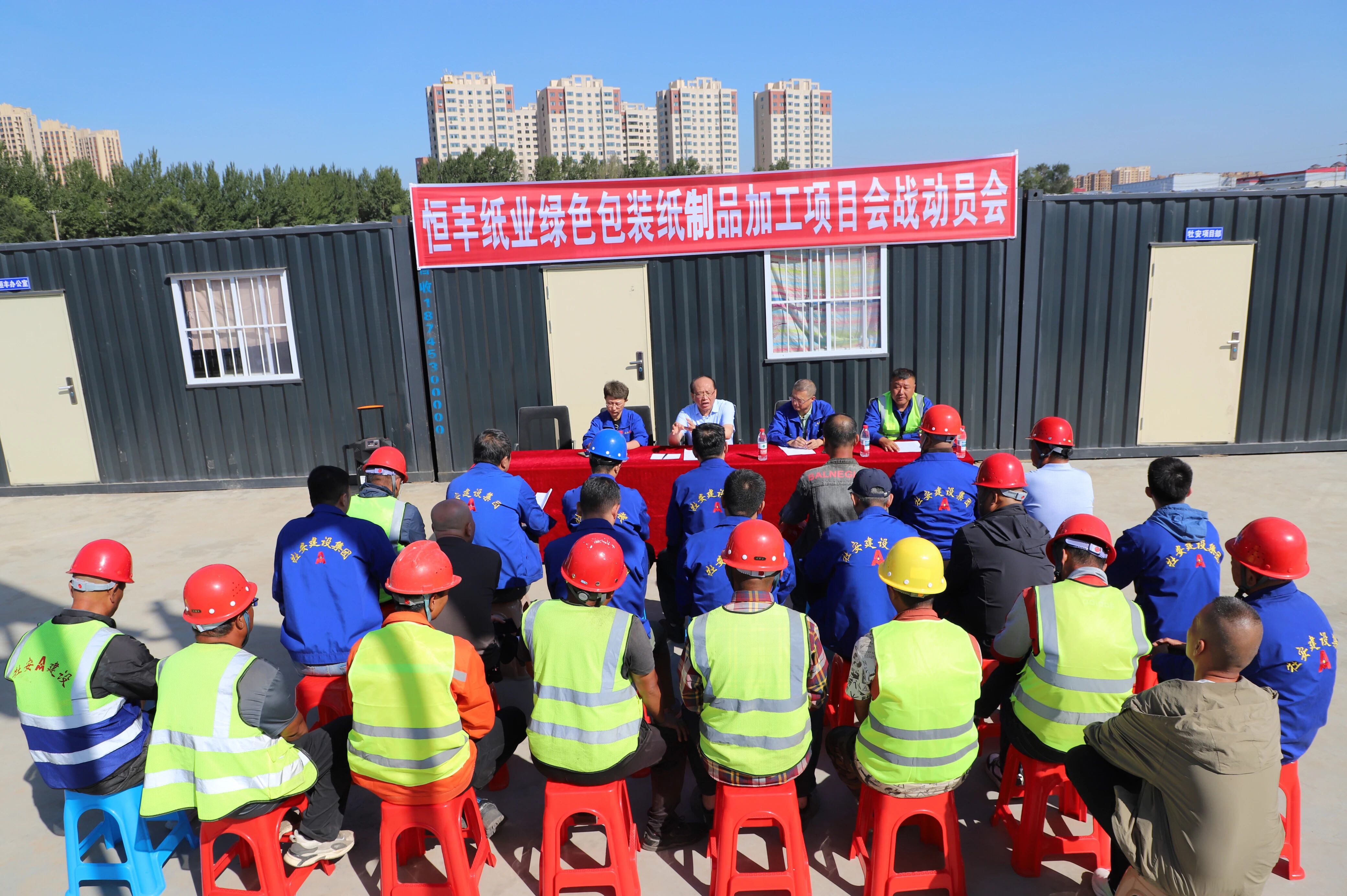 2025   年   9   月   11   日,公司在恒豐項目部召開恒豐紙業綠色包裝紙制品加工項目會戰動員會。本次會議旨在凝聚全員力量、明確工作方向,為項目會戰吹響沖鋒號角,會議由公司副總經理王天茂主持。